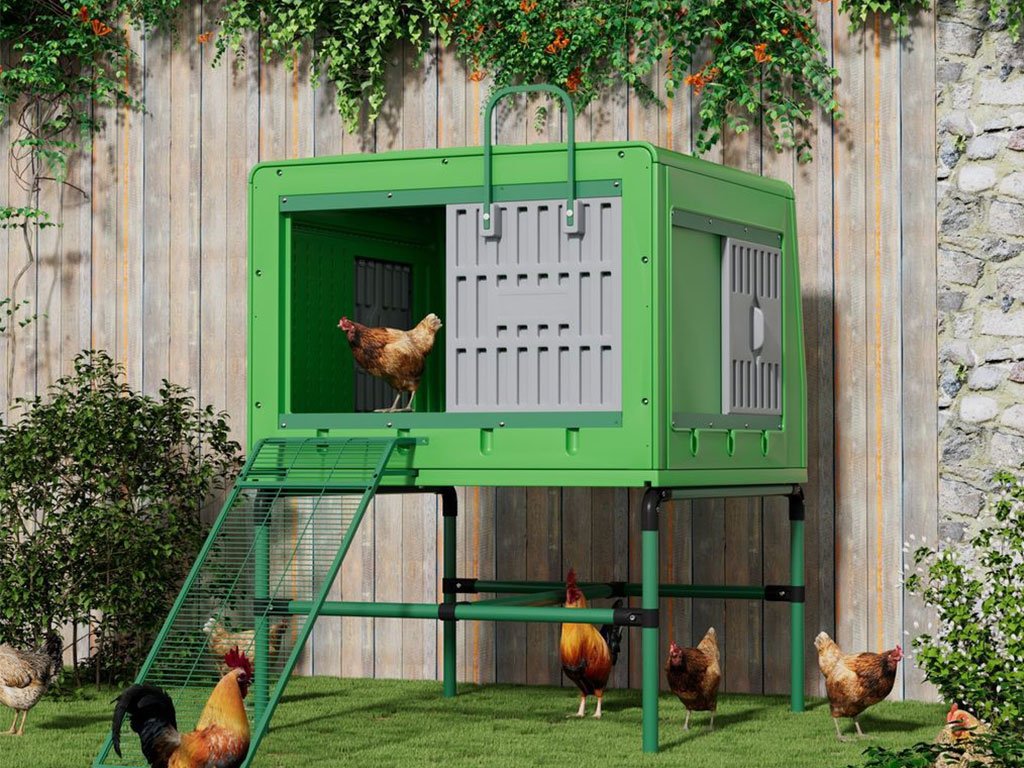 Kurník je vyroben z odolného plastu, který je vhodný pro celoroční venkovní použití. Materiál je hygienický a snadno omyvatelný, takže slepice mají vždy čisté a zdravé prostředí. Konstrukce je stabilní a pevná, odolná vůči vlhkosti, mrazu i UV záření, a dobře snáší běžné venkovní podmínky. Kurník je navržen tak, aby poskytoval slepicím pohodlí a bezpečí, a přitom byl praktický pro chovatele. Díky kombinaci pevného materiálu a promyšleného designu je ideální pro menší chovy, kde se cení komfort i praktičnost. Moderní a estetický vzhled kurníku zároveň dobře zapadá do zahrady a okolí. Tento plastový kurník spojuje praktičnost, odolnost a moderní design v jednom kompaktním řešení.