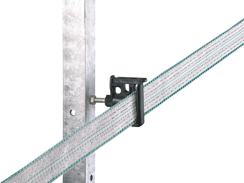 Izolátor pro elektrický ohradník, vhodný pro lanko či pásku, pozinkovaný kovový závit M6, pro lanka do Ø 6mm, pro pásky do 40 mm.