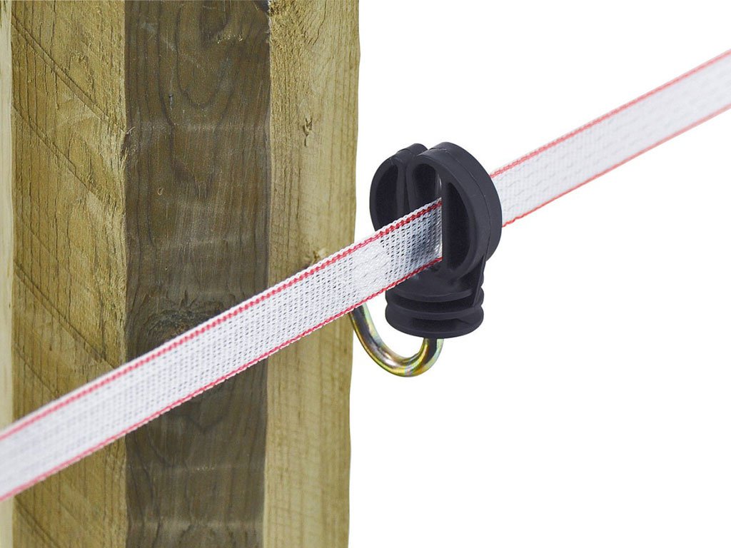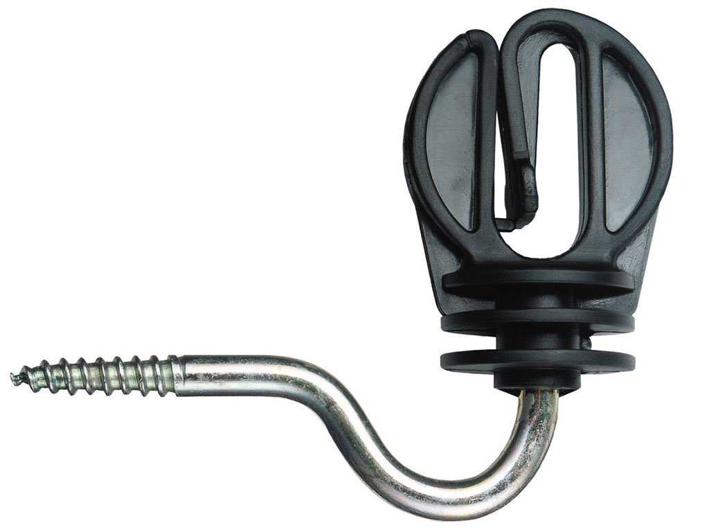 Izolátor pro elektrický ohradník, vhodný pro lanko do 20 mm, vynikající izolační vlastnosti, odolný vůči větru a UV záření, pozinkovaný kovový vrut, vrut Ø 6 mm.