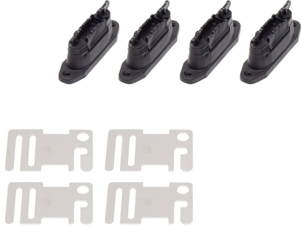 Rohový izolátor pro elektrický ohradník, vhodný pro pásky a lanka, nerezové provedení, grafitová vodivá vložka, 4 kusy v balení, připevnění na 2 vruty.