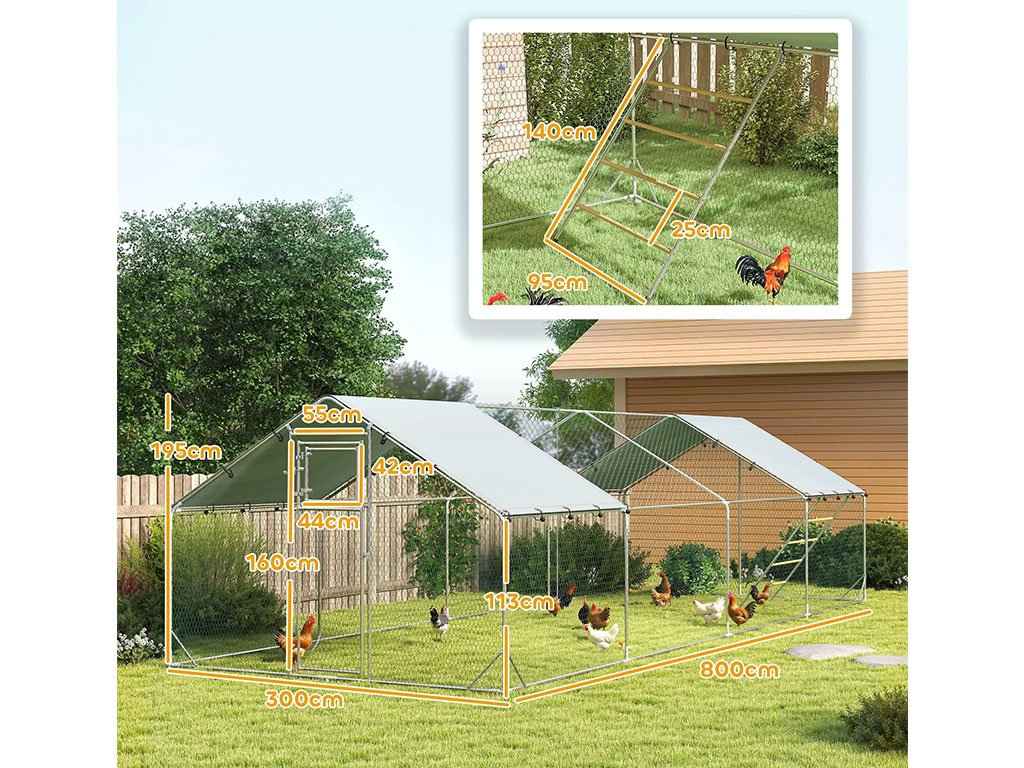 Výběh pro drůbež s bidlem PAWHUT D51-436V03SR, 3x8x1,95m