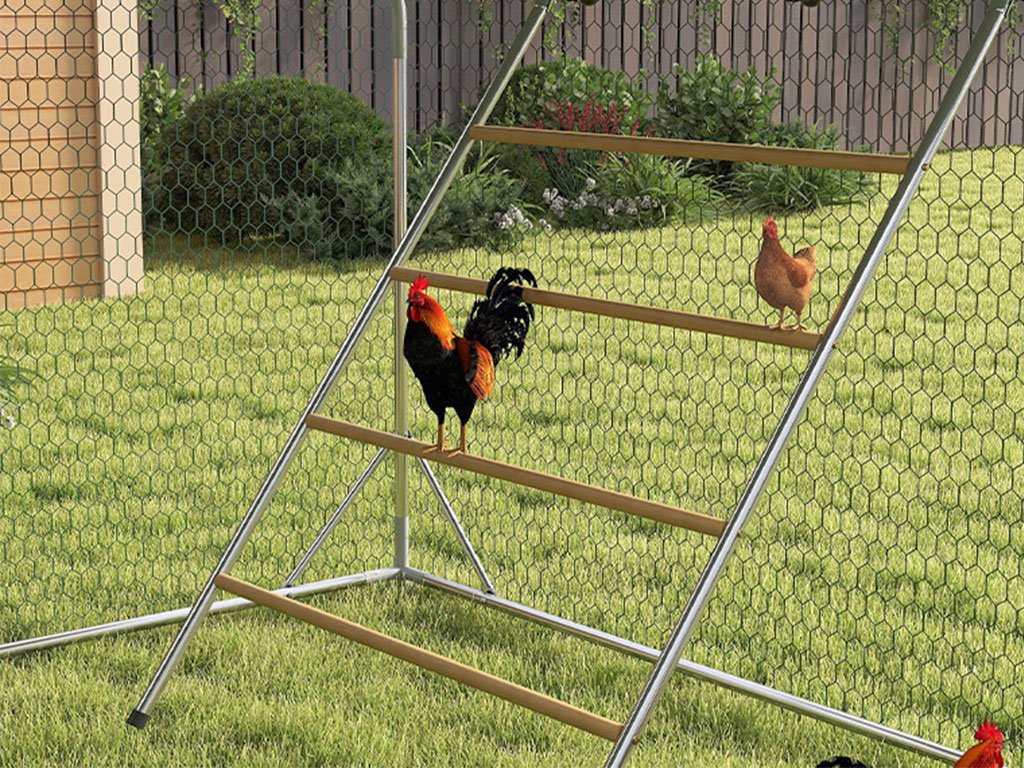 Tento prostorný výběh je skvělým řešením pro každého chovatele, který chce svým zvířatům dopřát bezpečný pobyt na čerstvém vzduchu. Díky odolnému pletivu a pevné ocelové konstrukci jsou zvířata chráněna před predátory i nepřízní počasí. Výběh snadno sestavíte díky promyšlenému systému a součástí je i stříška z voděodolné Oxfordské tkaniny, která chrání drůbež před sluncem i deštěm. Praktická velká branka a krmná dvířka zajišťují pohodlný přístup i snadnou péči o zvířata. Uvnitř výběhu je víceúrovňové bidýlko, které poskytuje místo k odpočinku i zábavě. Různé výšky bidýlek podporují pohyb a přirozené chování.